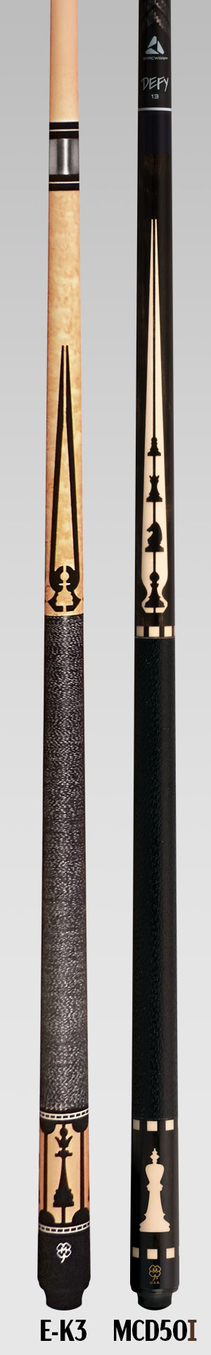 Tags: McDermott cue, MCD50I, mcd50, chess motif cue, 50th Anniversary cue, pool cue, ebony holly cue, Defy carbon fiber shaft, chessboard rings, king queen inlays, limited edition cue, McDermott pool cue, E-K3 inspired