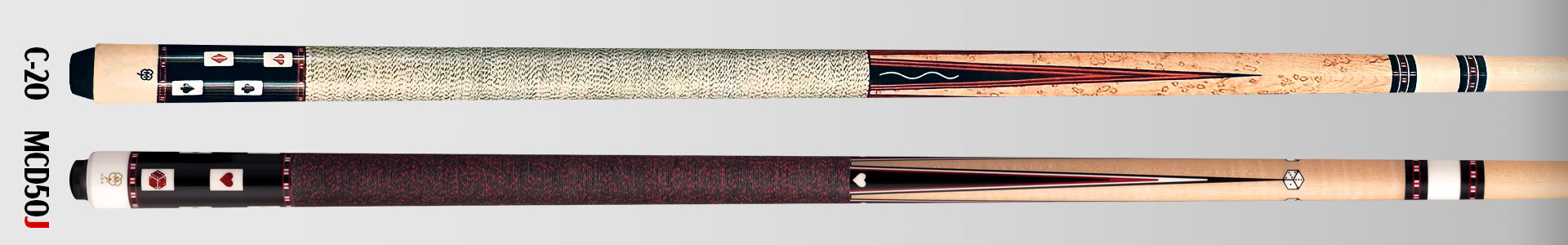 Tags: McDermott cue, mcd50, MCD50J, gambler cue, 50th Anniversary cue, pool cue, card suits dice, poker chip rings, curly maple cue, Irish linen wrap, ebony sleeve, limited edition cue, McDermott pool cue, C-20 D-19 tribute