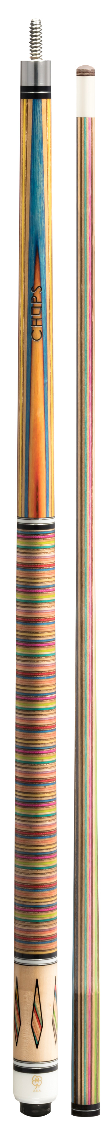 Every CHOP20 cue will be unique. Each piece of laminated skateboard wood has its own unique combination of pattern, shape and color. The appearance will vary from cue to cue.