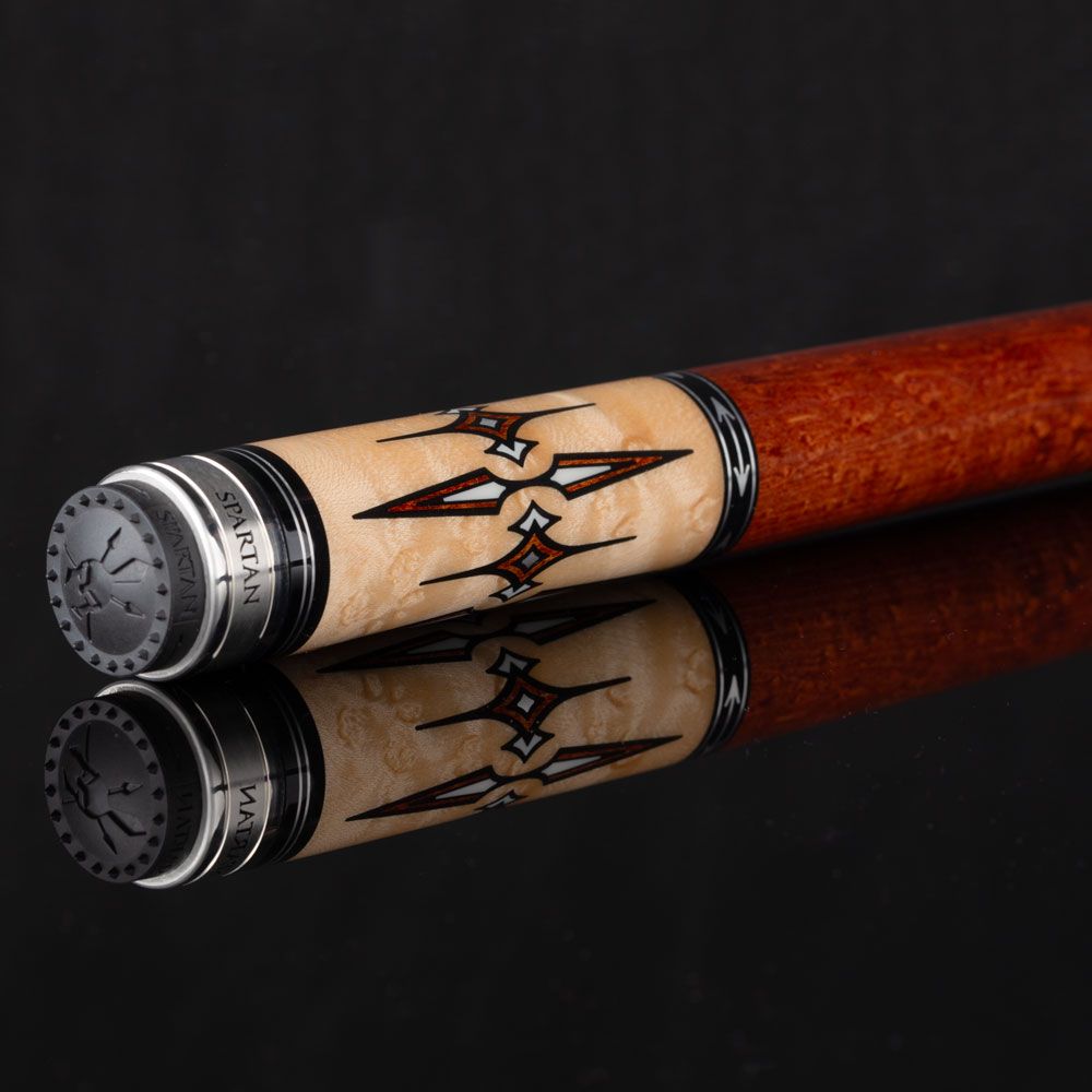 Command the table with the Spartan SPR03, a professional-grade cue that strikes the perfect balance between traditional elegance and modern performance. This wrapless model features the stunning contrast of Natural Birdseye Maple paired with deep Coffee Stained accents. With its sophisticated spearhead inlays crafted from Micarta, Coffee Stained Maple, and Stainless Steel, the SPR03 is designed for the player who wants a custom-shop look with tournament-winning technology.