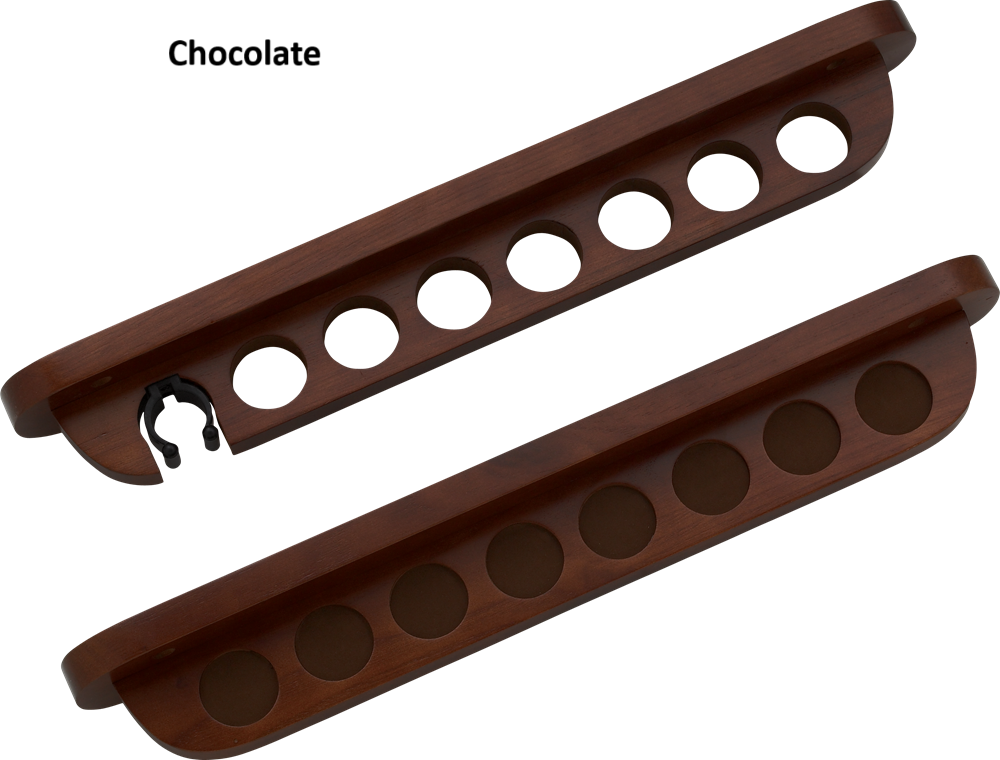 Wall rack hold 10 cues Dimensions: 4(d) x 60(h) x 29(w) Available in chocolate, honey, midnight an..